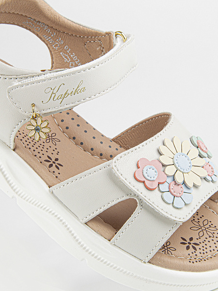 Практичные открытые сандалии на липучках для девочек. Традиционно высокое качество обуви Капика, непревзойденная эргономичность в сочетании с высочайшей износостойкостью — вот главные характеристики представленной модели. Застежки-липучки плотно зафиксируют обувь на ноге любой полноты, а внутренняя поверхность из текстиля будет комфортна при движении. Присутствие материала ЭВА в составе подошвы делает сандалии очень легкими и износостойкими.