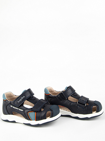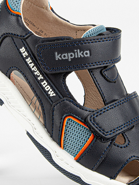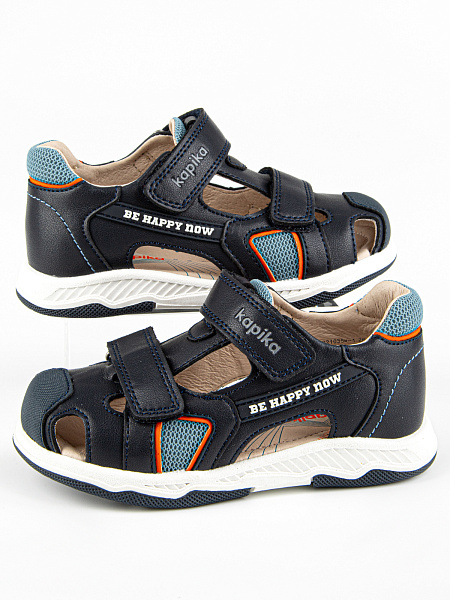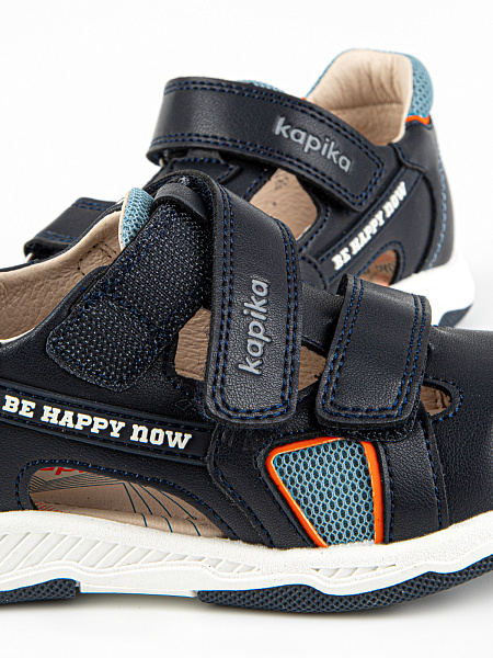 Новинка! Стильные сандалии из новой коллекции Капика. Верх выполнен из комбинации натуральной и экокожи. Оригинальный дизайн и различные фактуры в отделке обязательно придутся по душе вашему моднику. Две липучки плотно фиксируют обувь на ноге, кожаная стелька поглощает излишнее испарение, повышая комфорт во время прогулок жаркими летними деньками. Супинатор поддержит свод стопы. Обувь имеет анатомически правильную колодку, качественную гибкую подошву из ТЭП и формоустойчивый задник. Прекрасное решение для сменной обуви в детский садик и на прогулку!