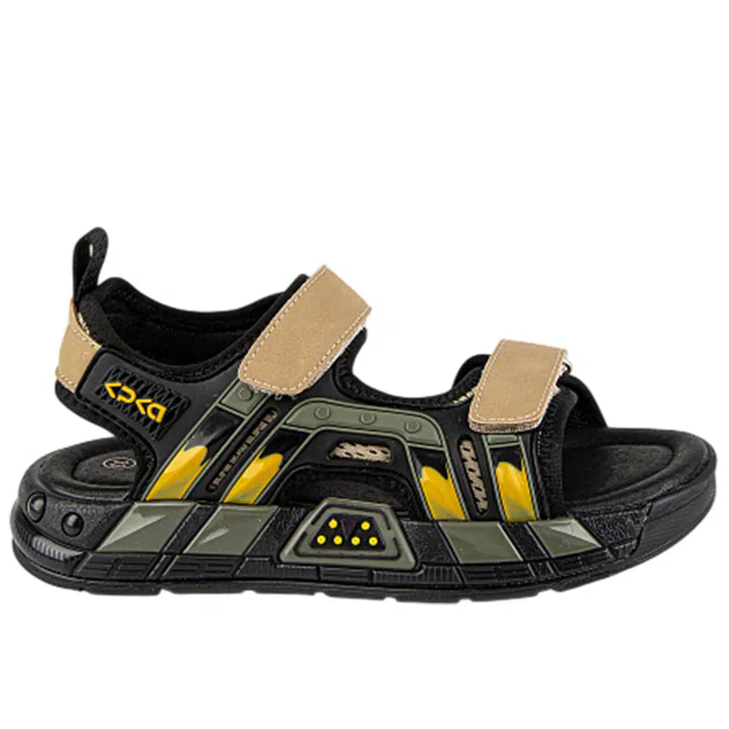 Новинка! Открытые модные босоножки на спортивной подошве понравятся каждому мальчишке. Ведь они выполнены из мягких качественных материалов. Две липучки помогут отрегулировать посадку по ноге, а  стелька из натуральной кожи обеспечит комфортную носку. Небольшой супинатор помогает правильно распределить нагрузку на стопу и обеспечивает комфортное ношение в течение всего дня.  Яркое цветовое решение отлично дополнит любой гардероб.