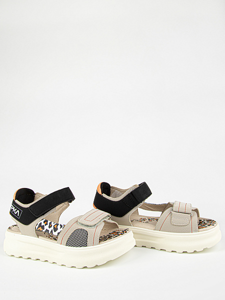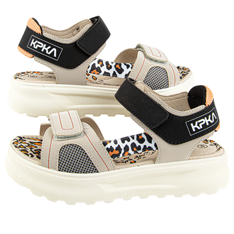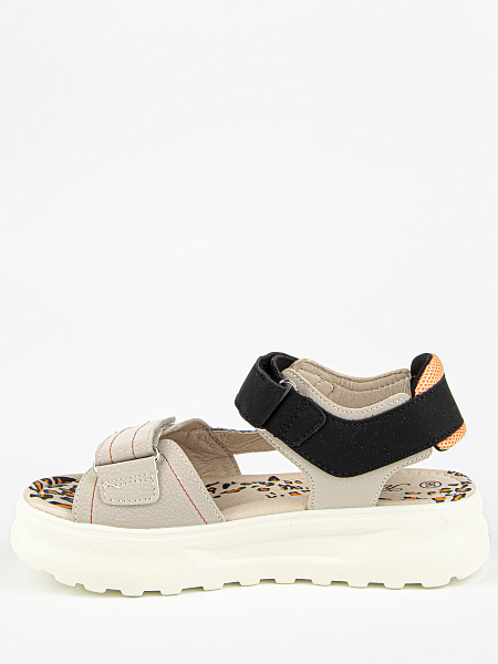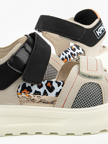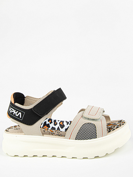 Новинка! Открытые сандалии бежевого цвета с контрастными вставками с текстовым и анималистичным принтом. Верх изделия выполнен из комбинации качественной экокожи и текстиля. Облегченная подошва отличается отличной амортизацией. Небольшой супинатор помогает правильно распределить нагрузку на стопу и обеспечивает комфортное ношение в течение всего дня. На ноге модель фиксируется при помощи застежек-липучек. Оригинальный дизайн и стильная колодка обязательно придутся по душе взыскательному вкусу девочки-подростка.