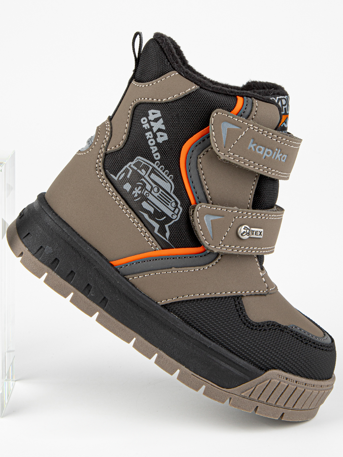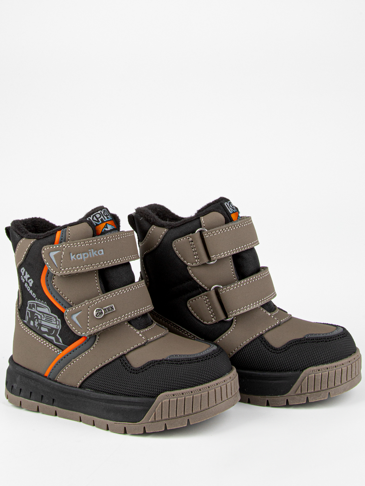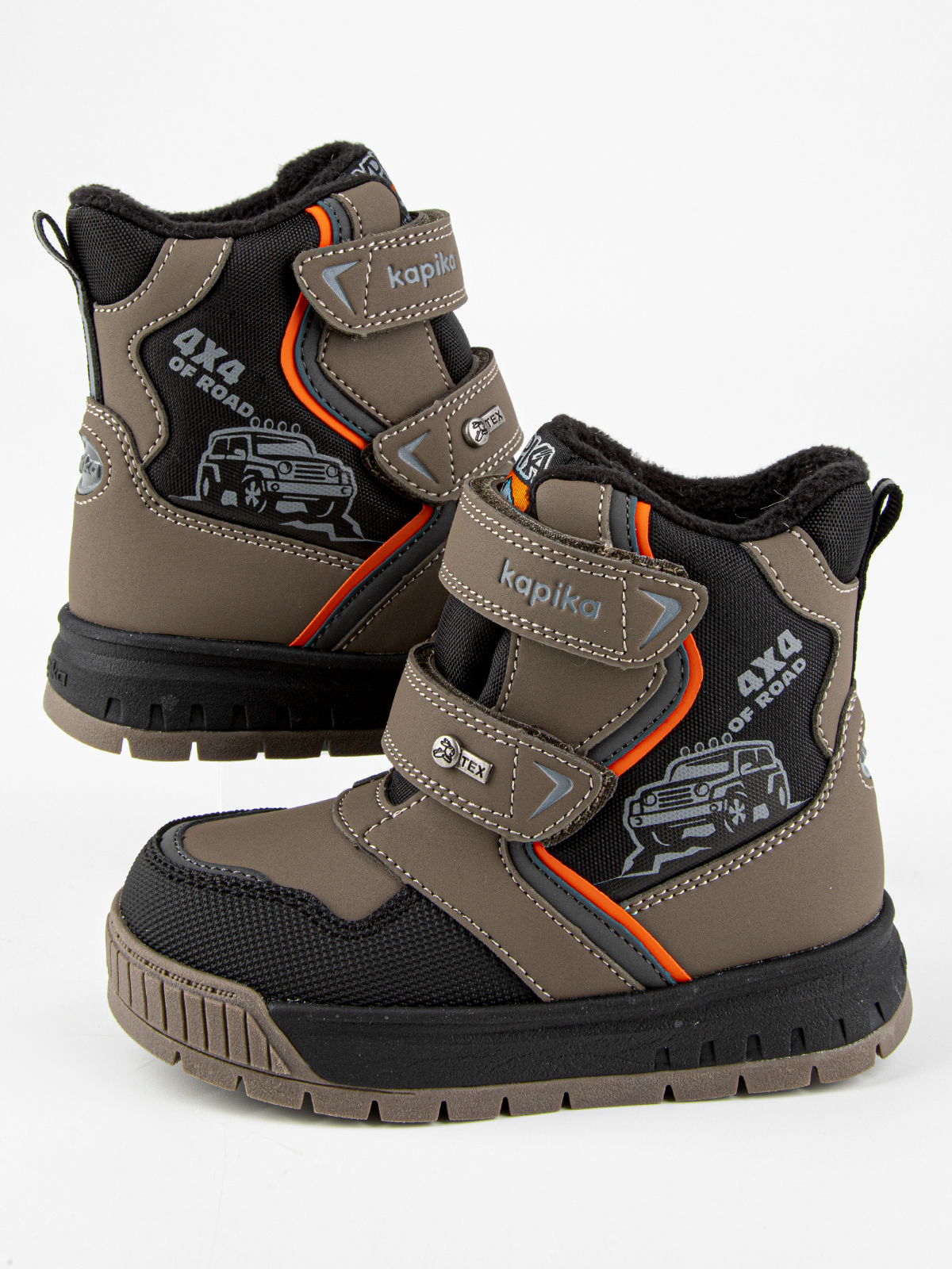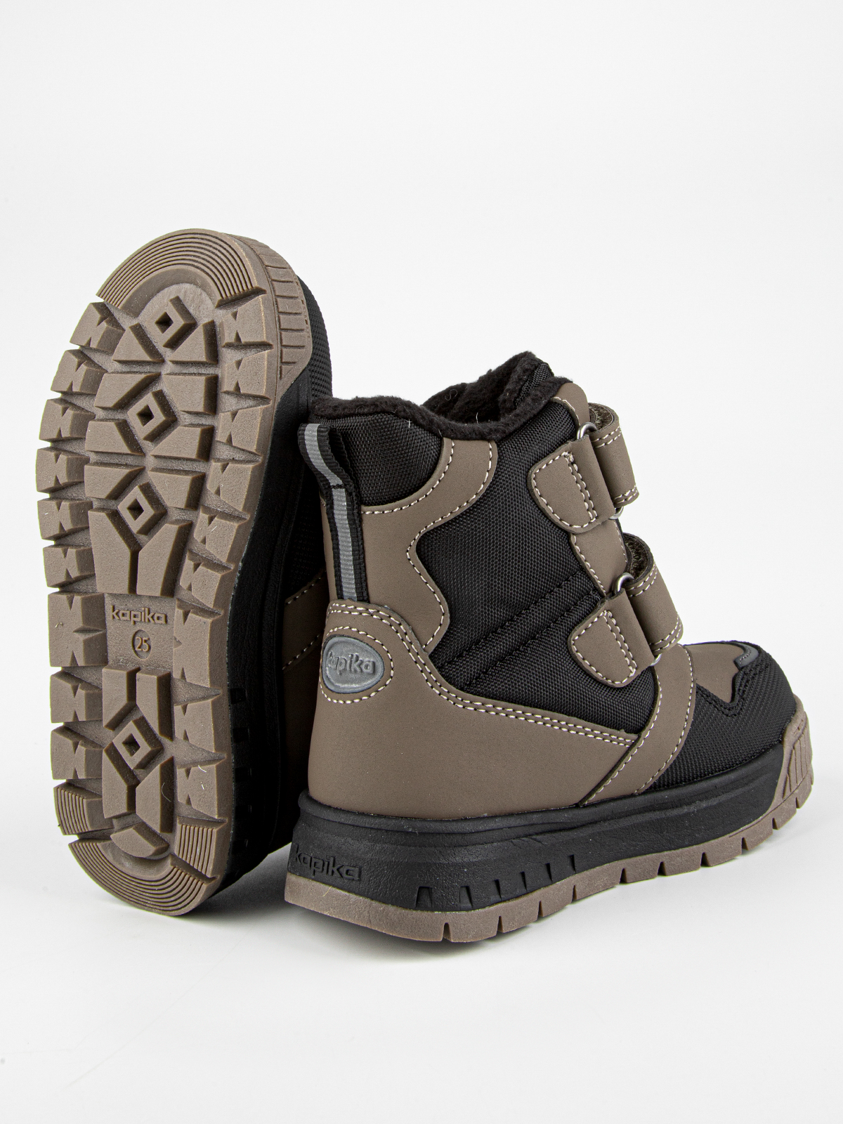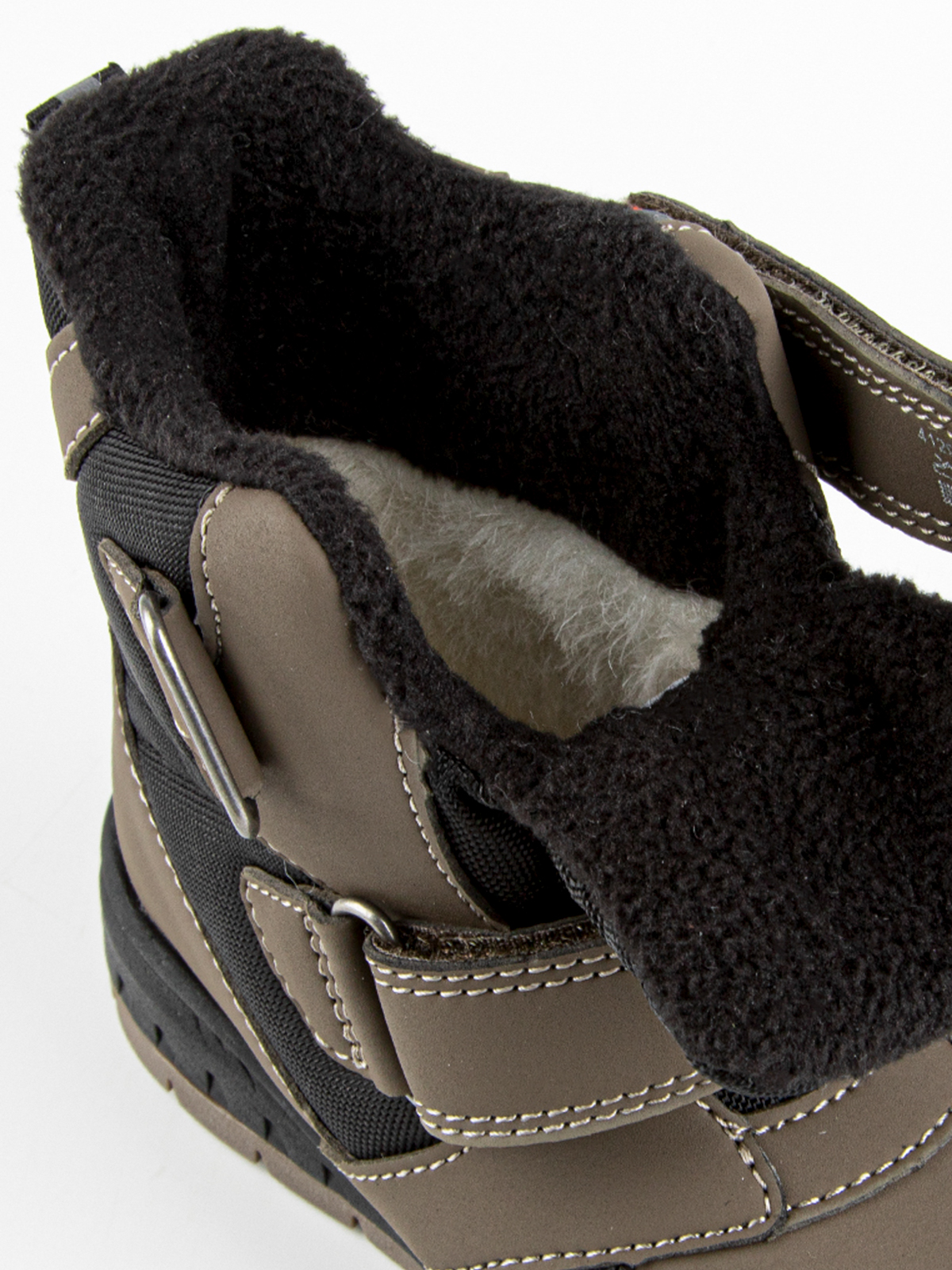 Стильные, теплые и легкие мембранные ботинки для мальчика. Верх ботинок сделан из комбинированного гидрофобного материала, внутри — натуральная шерсть с текстилем. Мембрана Kapitex сохраняет комфортный микроклимат для ног ребенка. Язычок прошит почти до самого верха, что предотвращает попадание влаги и снега во внутрь обуви. Стелька состоит из натурального овечьего меха (обеспечивает тепло и циркуляцию воздуха) и слоя перфорированной фольги (сохраняет тепло, надежно защищает от холода). Отлично регулируются по полноте и подъему с помощью двух застежек-липучек. Нескользящая подошва. Не промокают. Температурный режим носки от 0 до минус 30!