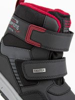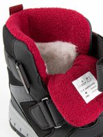 Стильные, теплые и легкие мембранные ботинки для мальчика. Верх ботинок сделан из комбинированного водонепроницаемого материала, внутри — натуральная шерсть с текстилем. Стелька состоит из натурального овечьего меха (обеспечивает тепло и циркуляцию воздуха) и слоя перфорированной фольги (сохраняет тепло, надежно защищает от холода). Отлично регулируются по полноте и подъему с помощью  липучки. Нескользящая подошва. Не промокают.  Температурный режим носки от 0 до минус 30!