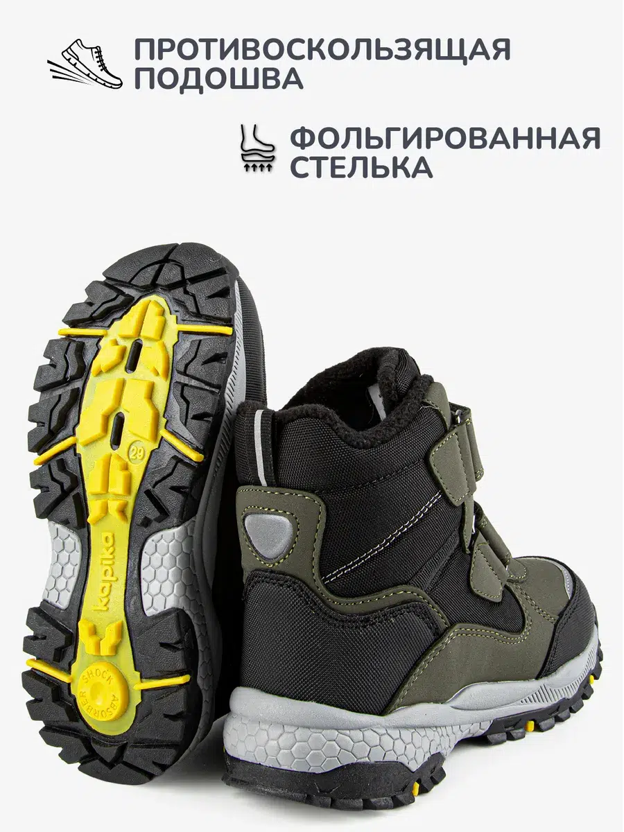 Стильные, теплые и легкие мембранные ботинки для мальчика. Верх ботинок сделан из комбинированного водонепроницаемого материала, внутри — натуральная шерсть с текстилем. Стелька состоит из натурального овечьего меха (обеспечивает тепло и циркуляцию воздуха) и слоя перфорированной фольги (сохраняет тепло, надежно защищает от холода). Отлично регулируются по полноте и подъему с помощью  липучки. Нескользящая подошва. Не промокают.  Температурный режим носки от 0 до минус 30!