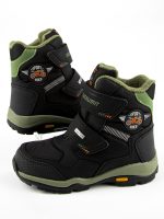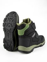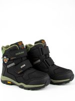Эффектные, теплые и легкие мембранные ботинки для мальчика на  легкой платформе. Верх ботинок сделан из комбинированного гидрофобного материала, внутри —  мембрана и натуральная шерсть с текстилем.  Стелька состоит из натурального овечьего меха (обеспечивает тепло и циркуляцию воздуха) и слоя перфорированной фольги (сохраняет тепло, надежно защищает от холода).  Не промокают. Протектор подошвы имеет выраженный рельеф и создает максимальный эффект против скольжения.
