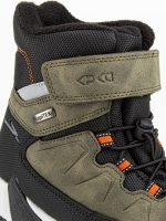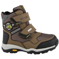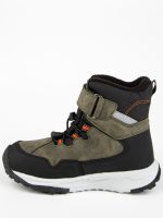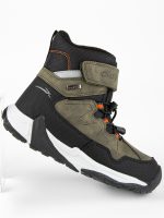Эффектные, теплые и легкие мембранные ботинки для мальчика на  легкой платформе. Верх ботинок сделан из комбинированного гидрофобного материала, внутри —  мембрана и натуральная шерсть с текстилем.  Стелька состоит из натурального овечьего меха (обеспечивает тепло и циркуляцию воздуха) и слоя перфорированной фольги (сохраняет тепло, надежно защищает от холода).  Не промокают. Протектор подошвы имеет выраженный рельеф и создает максимальный эффект против скольжения.