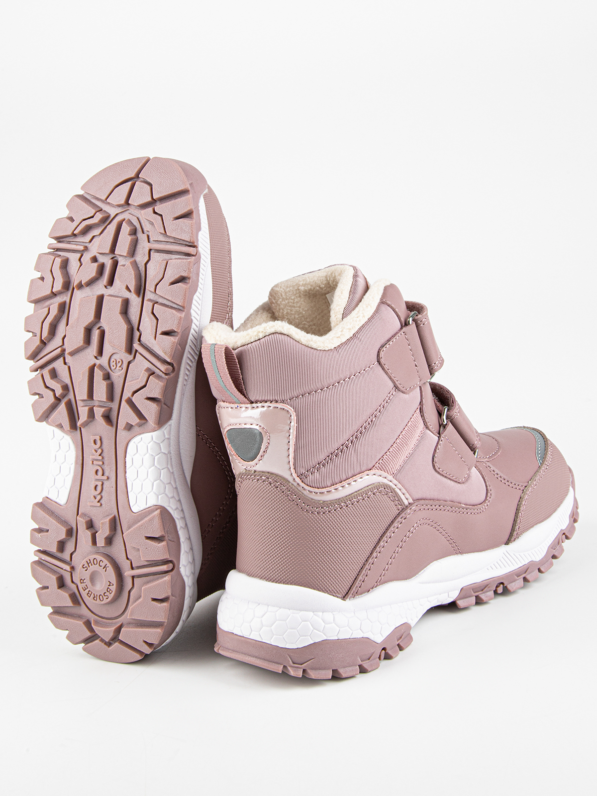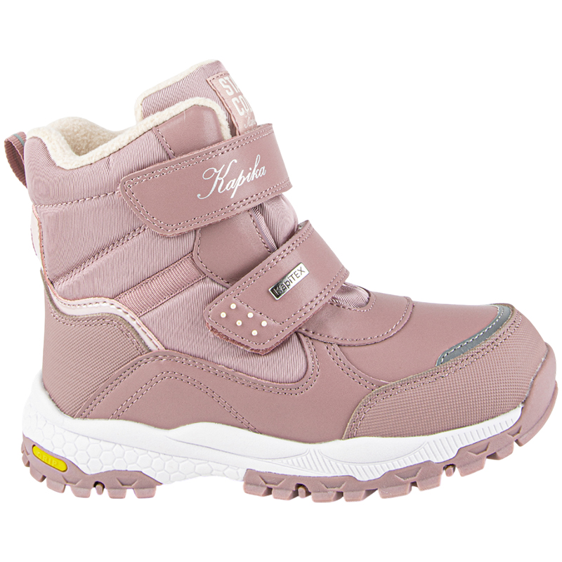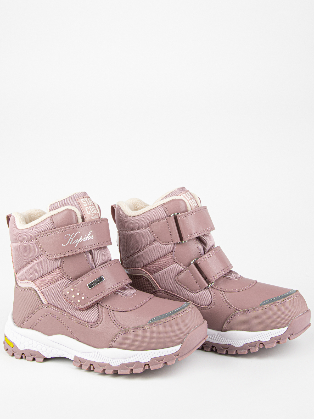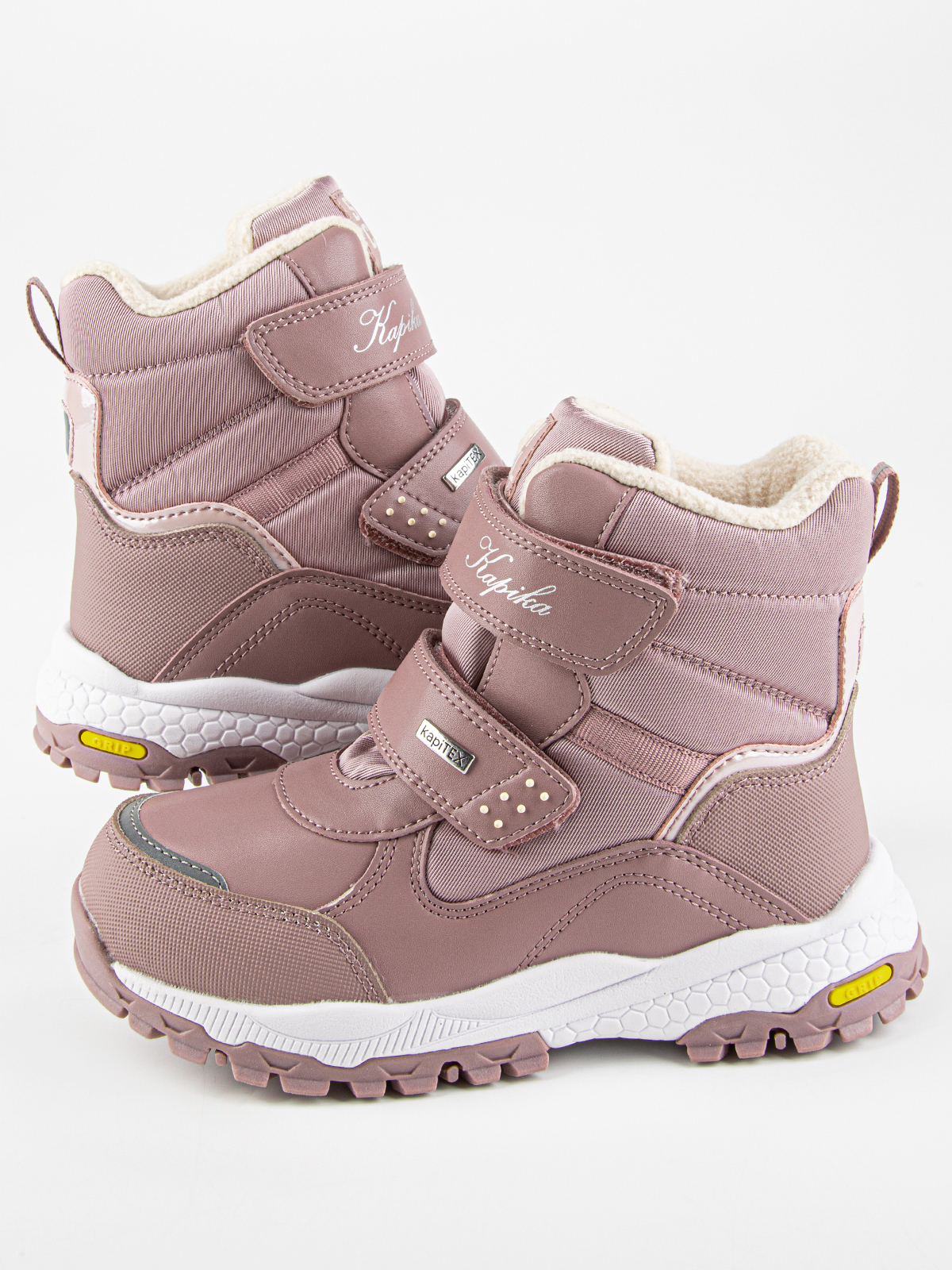 Эффектные, теплые и легкие мембранные ботинки для девочек на модной легкой платформе. Верх ботинок сделан из комбинированного гидрофобного материала, внутри — мембрана и натуральная шерсть с текстилем. Стелька состоит из натурального овечьего меха (обеспечивает тепло и циркуляцию воздуха) и слоя перфорированной фольги (сохраняет тепло, надежно защищает от холода). Не промокают. Протектор подошвы имеет выраженный рельеф и создает максимальный эффект против скольжения.