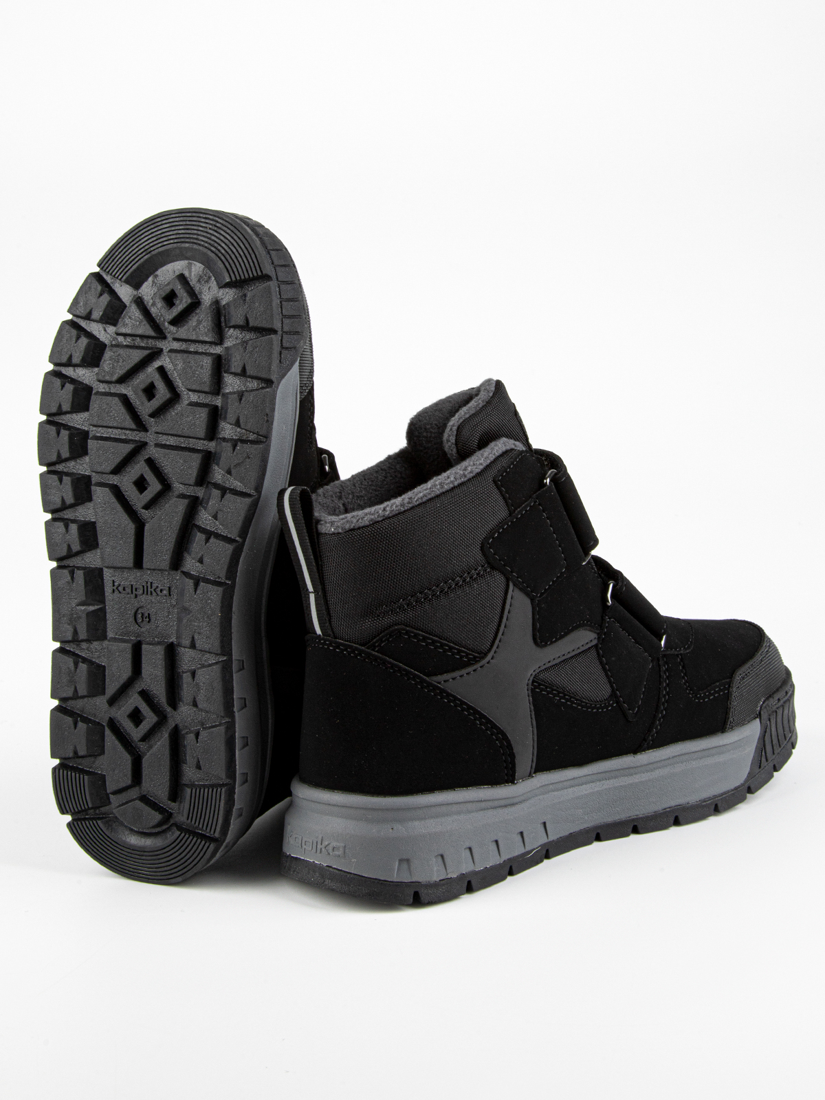 Эффектные, теплые и легкие мембранные ботинки для мальчика на легкой платформе. Верх ботинок сделан из комбинированного гидрофобного материала, внутри — мембрана и натуральная шерсть с текстилем. Стелька состоит из натурального овечьего меха (обеспечивает тепло и циркуляцию воздуха) и слоя перфорированной фольги (сохраняет тепло, надежно защищает от холода). Не промокают. Протектор подошвы имеет выраженный рельеф и создает максимальный эффект против скольжения.