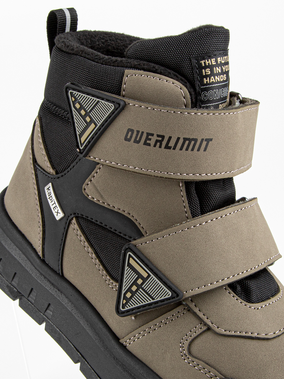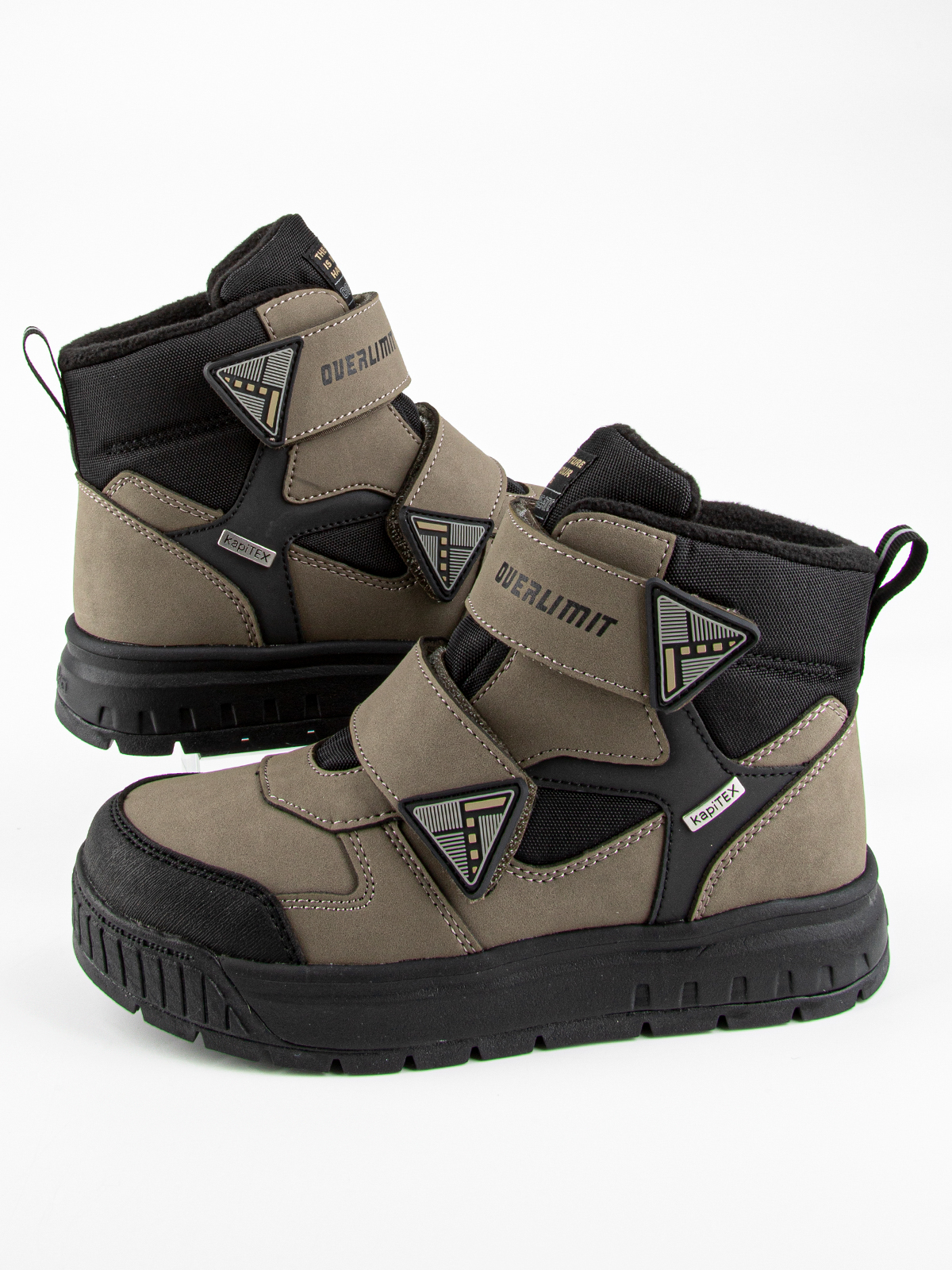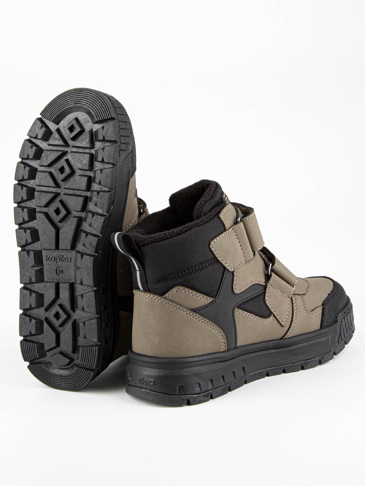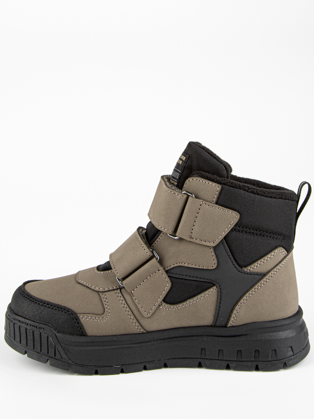 Эффектные, теплые и легкие мембранные ботинки для мальчика на  легкой платформе. Верх ботинок сделан из комбинированного гидрофобного материала, внутри —  мембрана и натуральная шерсть с текстилем.  Стелька состоит из натурального овечьего меха (обеспечивает тепло и циркуляцию воздуха) и слоя перфорированной фольги (сохраняет тепло, надежно защищает от холода).  Не промокают. Протектор подошвы имеет выраженный рельеф и создает максимальный эффект против скольжения.