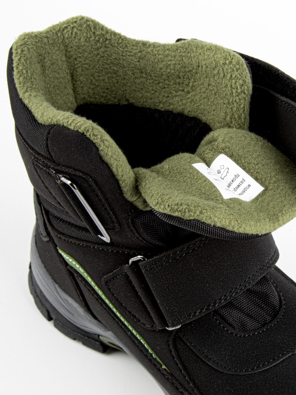Стильные, теплые и легкие мембранные ботинки для мальчиков для зимы. Верх ботинок сделан из комбинированного водонепроницаемого материала, внутри — натуральная шерсть с текстилем. Мембрана Kapitex сохраняет комфортный микроклимат для ног ребенка. Стелька состоит из натурального овечьего меха (обеспечивает тепло и циркуляцию воздуха) и слоя перфорированной фольги (сохраняет тепло, надежно защищает от холода). Отлично регулируются по полноте и подъему с помощью застежек-липучек. Подошва, состоящая из материалов ЭВА и резины, обеспечивает легкость и предотвращает скольжение. Не промокают. От 0 до минус 30.