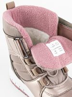 Эффектные, теплые и легкие мембранные ботинки для девочек на модной легкой платформе. Верх ботинок сделан из комбинированного гидрофобного материала, внутри — мембрана и натуральная шерсть с текстилем. Стелька состоит из натурального овечьего меха (обеспечивает тепло и циркуляцию воздуха) и слоя перфорированной фольги (сохраняет тепло, надежно защищает от холода). Не промокают. Протектор подошвы имеет выраженный рельеф и создает максимальный эффект против скольжения.
