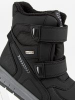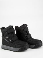 Эффектные, теплые и легкие мембранные ботинки для мальчика на  легкой платформе. Верх ботинок сделан из комбинированного гидрофобного материала, внутри —  мембрана и натуральная шерсть с текстилем.  Стелька состоит из натурального овечьего меха (обеспечивает тепло и циркуляцию воздуха) и слоя перфорированной фольги (сохраняет тепло, надежно защищает от холода).  Не промокают. Протектор подошвы имеет выраженный рельеф и создает максимальный эффект против скольжения.