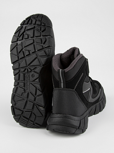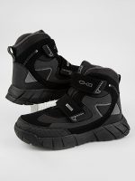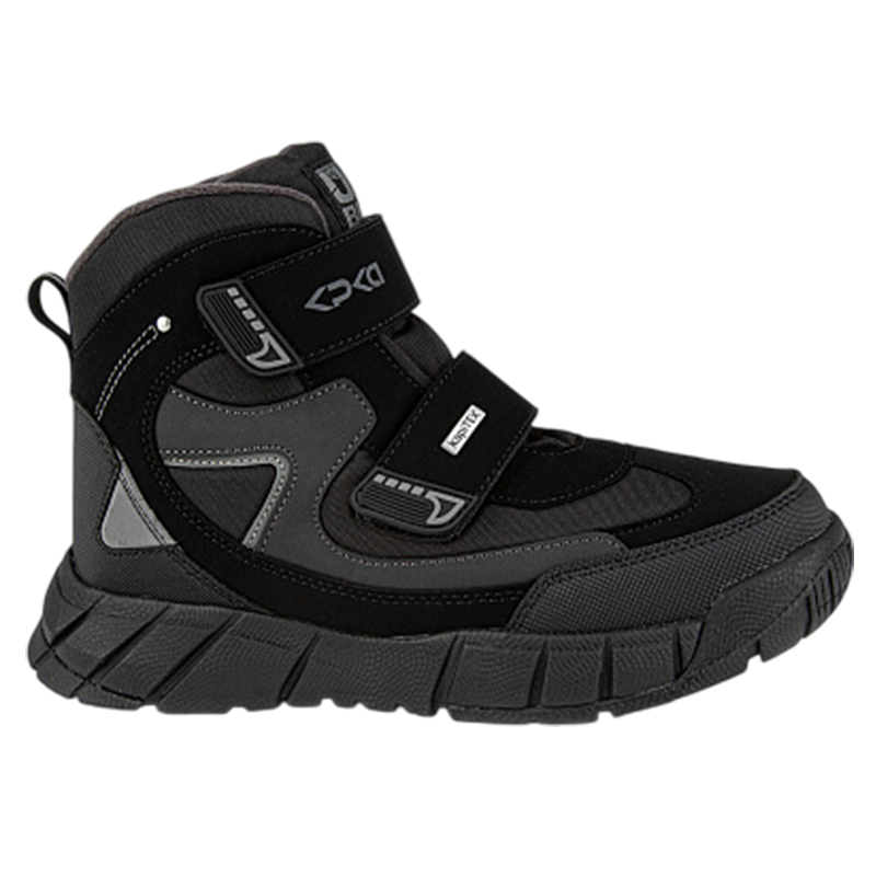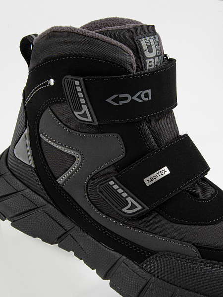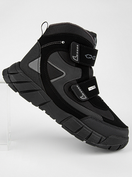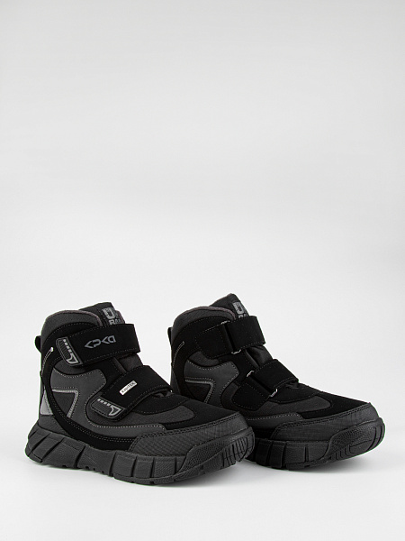 Стильные, теплые  мембранные ботинки для подростков для холодной зимы. Верх ботинок сделан из комбинированного водонепроницаемого материала, внутри — натуральная шерсть с текстилем. Мембрана Kapitex сохраняет комфортный микроклимат для ног ребенка. Стелька состоит из натурального овечьего меха (обеспечивает тепло и циркуляцию воздуха) и слоя перфорированной фольги (сохраняет тепло, надежно защищает от холода). Отлично регулируются по полноте и подъему с помощью двух застежек-липучек. Подошва, состоящая из материалов ЭВА и резины, обеспечивает легкость и предотвращает скольжение.  Не промокают. От 0  до минус 30.