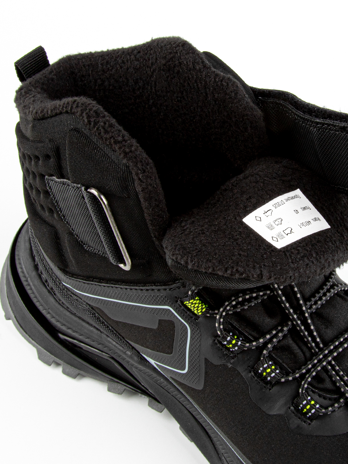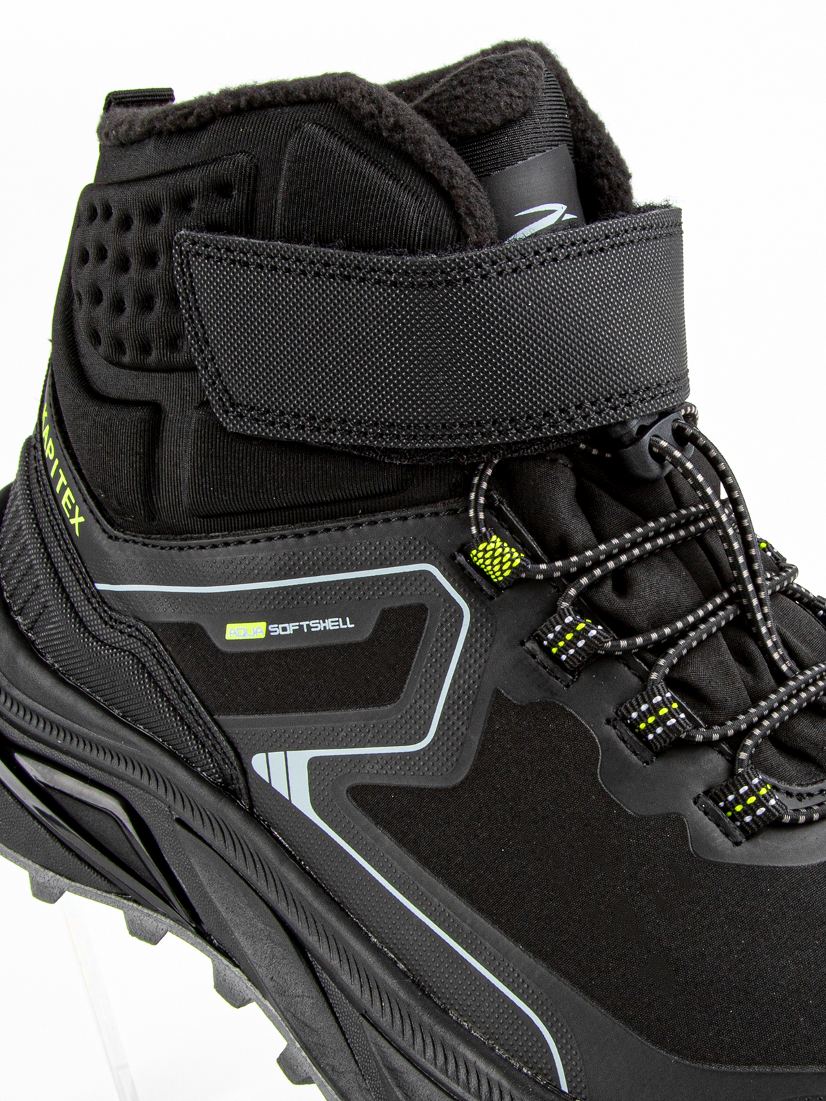 Стильные и  теплые  мембранные ботинки  для холодной зимы. Верх ботинок сделан из комбинированного водонепроницаемого материала S0ftshell, внутри — натуральная шерсть с текстилем. Мембрана  сохраняет комфортный микроклимат для ноги в сырую холодную погоду. Стелька состоит из натурального овечьего меха (обеспечивает тепло и циркуляцию воздуха) и слоя перфорированной фольги (сохраняет тепло, надежно защищает от холода). Регулируются по полноте и подъему с помощью резинки-утяжки и липы. Подошва, состоящая из материалов ЭВА и ТЭП, обеспечивает легкость и предотвращает скольжение.  Не промокают. От 0  до минус 30.