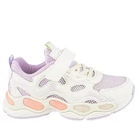 Стильные дышащие кроссовочки для девочки. Отлично регулируются на любой подъем и полноту. Подкладка из хлопка обеспечивает дополнительный комфорт для детской ножки. Эргономичная форма стельки с супинатором повторяет форму стопы — поддержание свода стопы, снижение общей утомляемости, правильное формирование детской ног, профилактика плоскостопия. Антибактериальная пропитка стельки — специальный гигроскопичный материал с вкраплениями угля — обеспечит эффективное поглощение влаги и неприятных запахов.  Отличный вариант для теплой весны и лета! Светодиоды в подошве мигают при ходьбе!