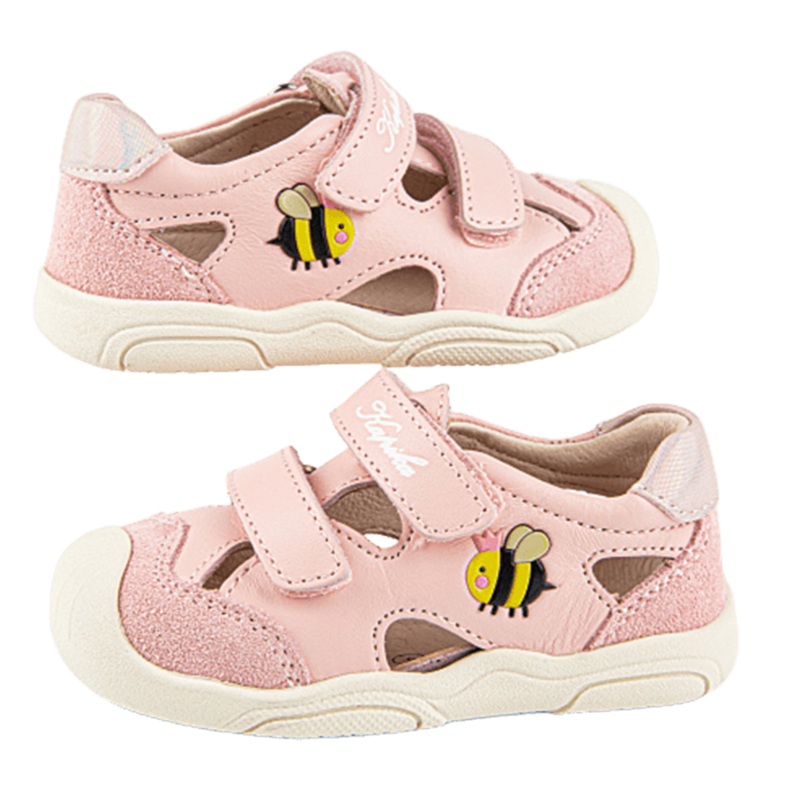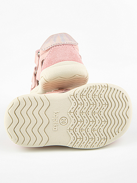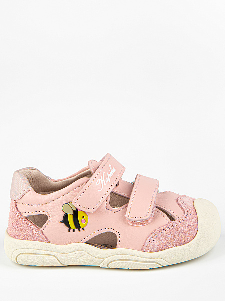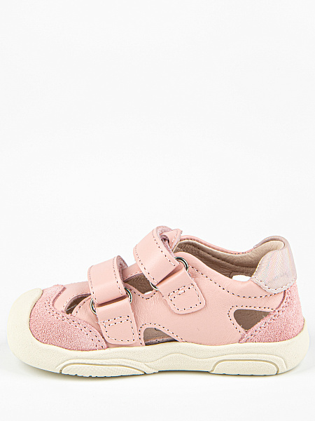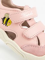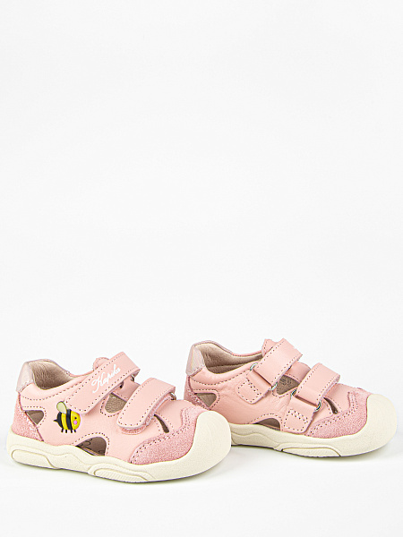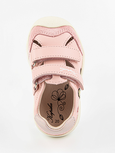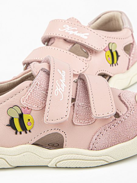 Новинка! Модель закрытых сандалий розового цвета, со специальной резиновой защитой носовой части обуви от истирания, а также с подошвой, которая заходит на носок обуви, что также является дополнительной защитой. Выполнены полностью из натуральной кожи. Подошва из резины гибкая и прочная.