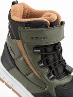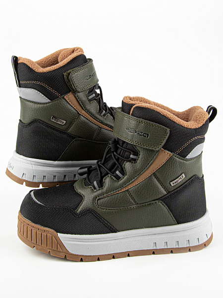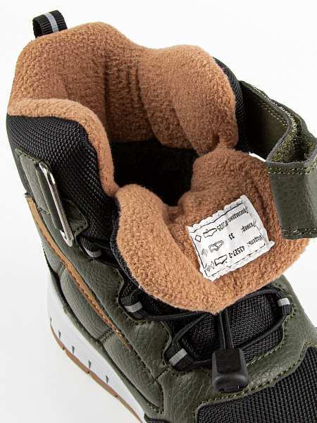 Стильные, теплые и легкие мембранные ботинки для мальчиков для зимы. Верх ботинок сделан из комбинированного водонепроницаемого материала, внутри — натуральная шерсть с текстилем. Мембрана Kapitex сохраняет комфортный микроклимат для ног ребенка. Стелька состоит из натурального овечьего меха (обеспечивает тепло и циркуляцию воздуха) и слоя перфорированной фольги (сохраняет тепло, надежно защищает от холода). Отлично регулируются по полноте и подъему с помощью двух застежек-липучек. Подошва, состоящая из материалов ЭВА и резины, обеспечивает легкость и предотвращает скольжение. Не промокают. От 0 до минус 30.